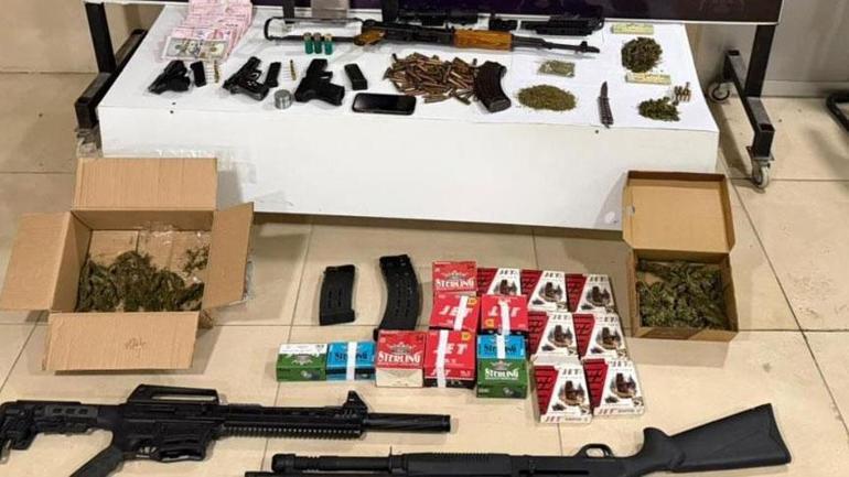 Şahısların ikametlerinde yapılan aramalarda ise; 1 adet AK-47 Kalaşnikof marka tüfek, 1 şarjör 100 adet fişek, 123.37 gram esrar maddesi, 3 adet tabanca, tabancaya ait şarjörler, 91 adet fişek, 4 adet av tüfeği, 269 adet av tüfeği kartuşu, 3 adet bıçak, 111 bin TL para ve 300 Amerikan doları, 1 adet esrar öğütücü aparat, 1 adet hassas terazi, tüfek dürbünleri ve aparatlar ele geçirildi.