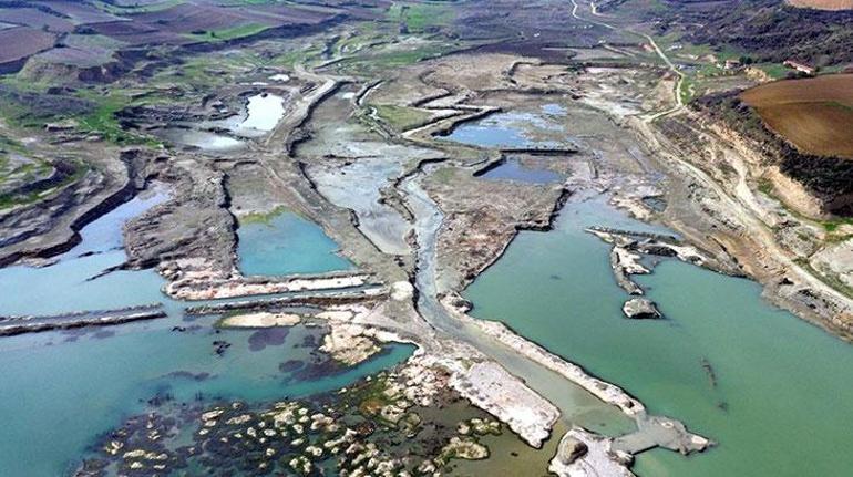 Tekirdağ’ın 210 bin nüfuslu merkez ilçesi Süleymanpaşa’nın içme suyunu karşılayan Naip Barajı, kurak ve yağışsız geçen yaz ayları nedeniyle kuruma noktasına geldi. Su seviyesinin yüzde 1’in altına düştüğü barajda, ağaç kökleri ortaya çıktı, adacıklar oluştu. Kuruyan kısımlarda su altında bulunan yapılar ortaya çıktığı baraj dronla görüntülendi.