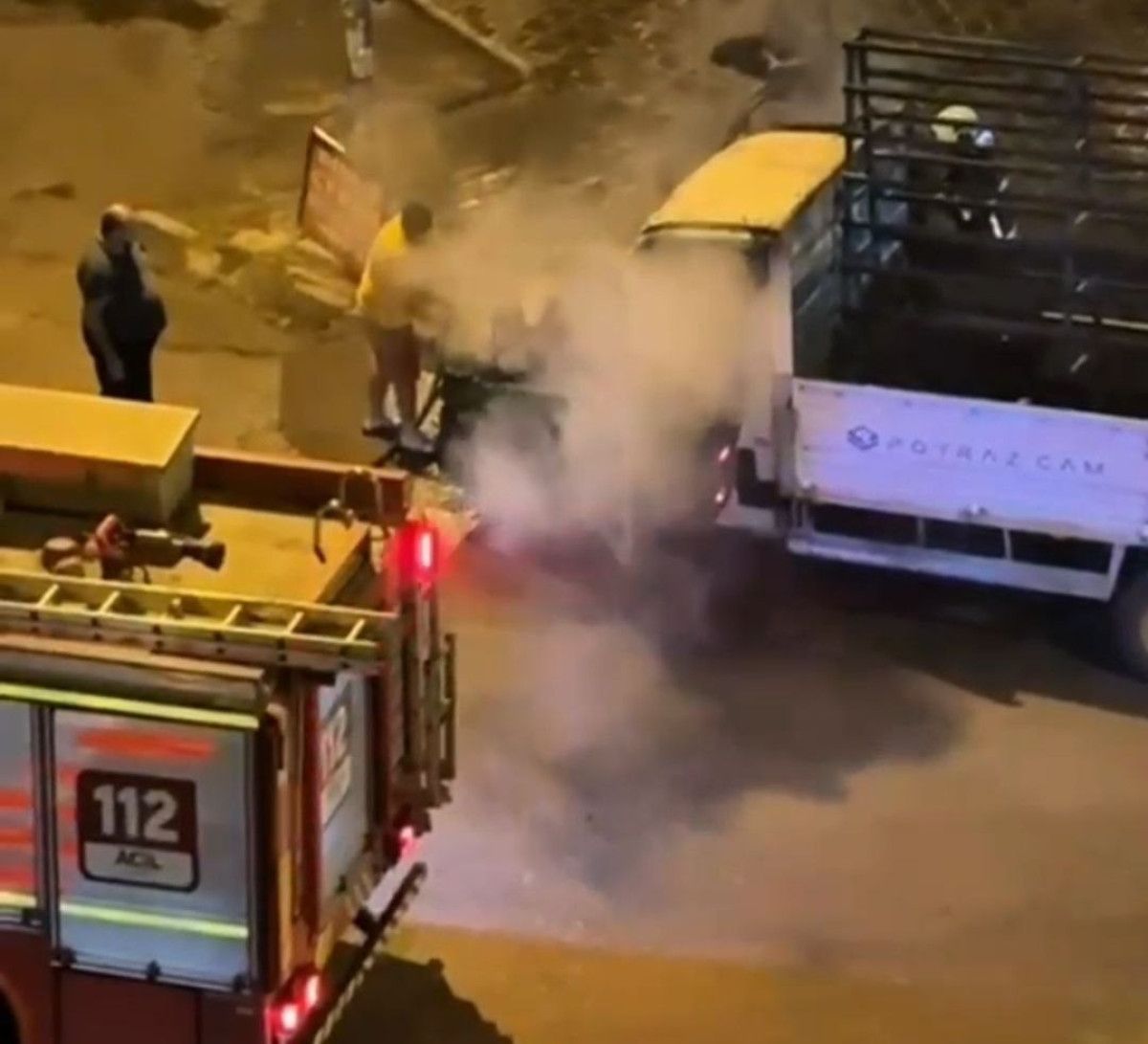 Bir anda motor kısmından alev alan kamyoneti gören vatandaşlar durumu 112’ye bildirdi. Bunun üzerine olay yerine itfaiye ekipleri sevk edildi.