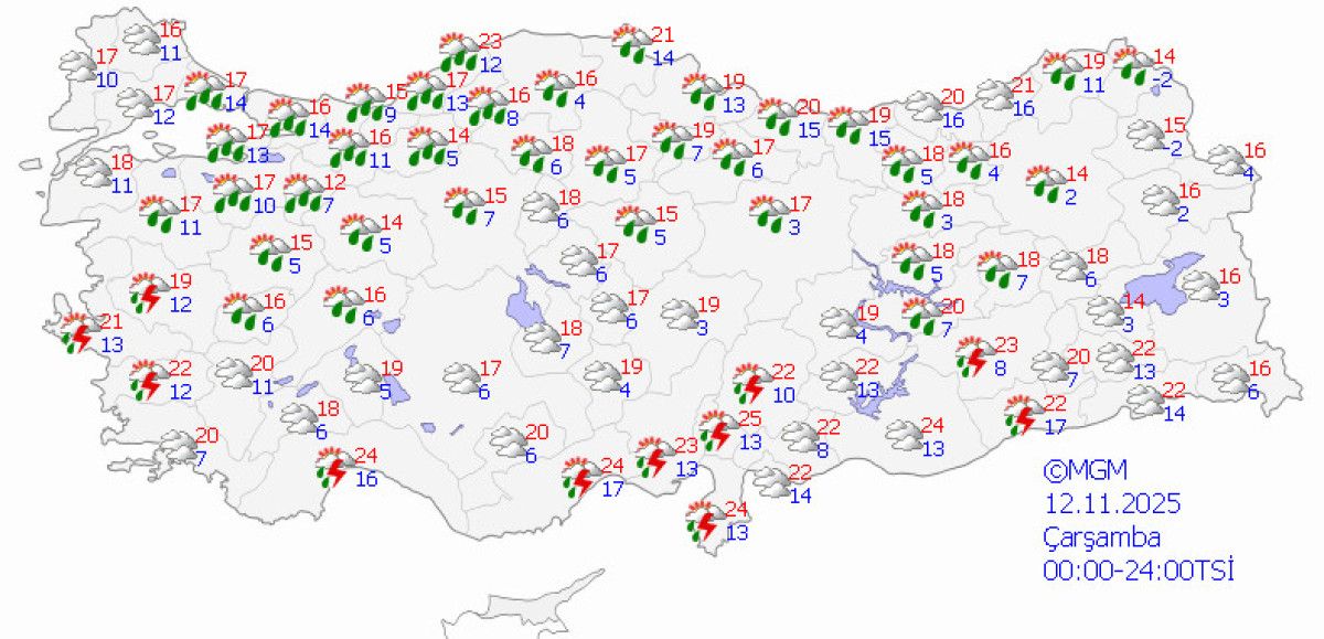 Özellikle Marmara ve Ege kıyılarında yerel sağanaklar beklenirken, sel tehlikesi ve ani su baskınlarına karşı uyarılar yapıldı.