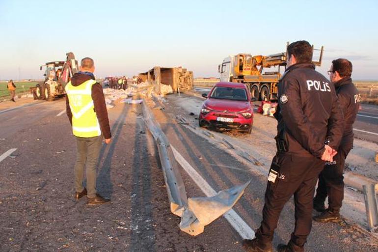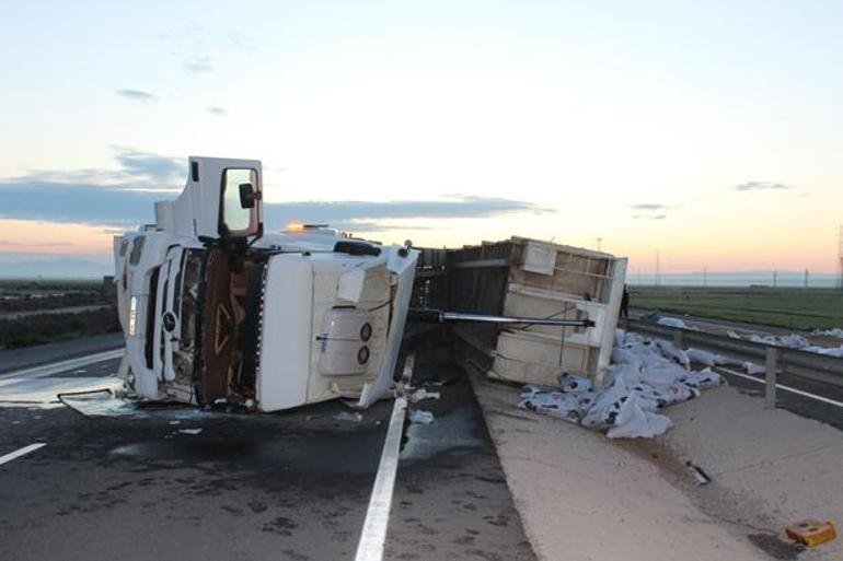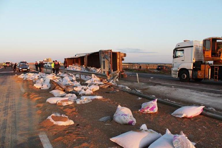 Kaza, saat 06.00 sıralarında Aksaray- Konya kara yolunun 19’uncu kilometresinde meydana geldi. Mustafa Ceylan’ın (52) kontrolünü yitirdiği 42 AKK 368 plakalı yem yüklü TIR, refüje devrildi.