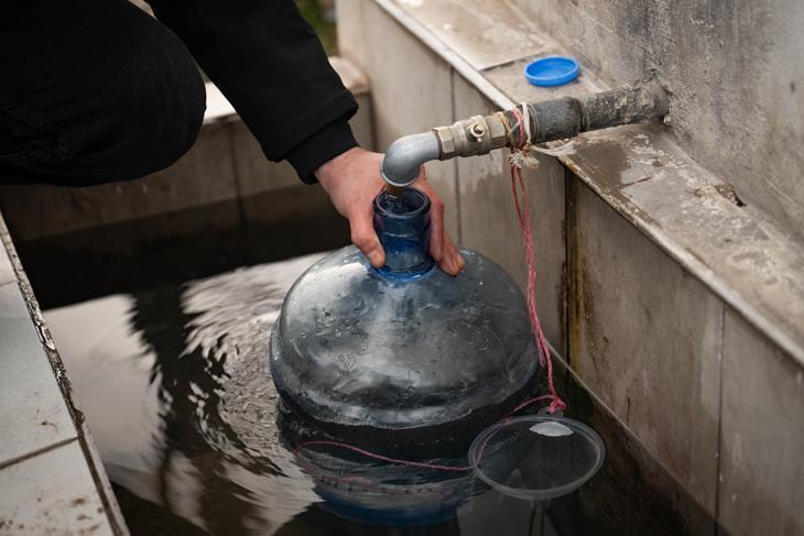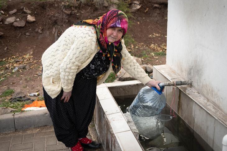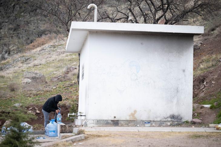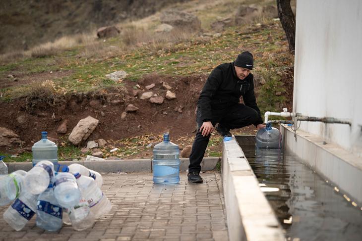 Ankara’nın Sincan ilçesinde su kesintisi nedeniyle vatandaşlar çeşmelerden su dolduruyor.