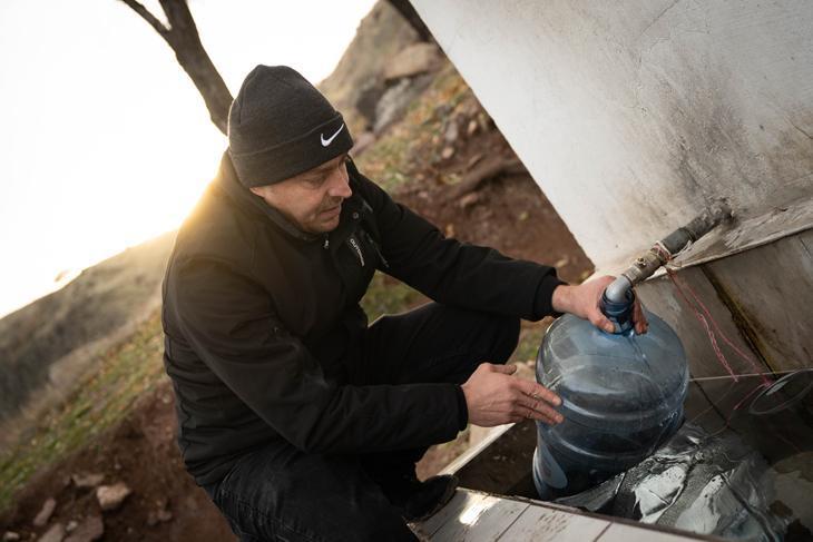 Ellerinde damacana ve bidonlarla çeşme başında sıraya giren vatandaşlardan Aslan İpek, suların dün geceden bu yana kesik olduğunu belirterek, “Haber vermiyorlar, karda kışta perişan oluyoruz. İnsani ihtiyacımızı karşılayamıyoruz. Çok mağduruz, suların bir an önce gelmesini istiyoruz.” dedi.