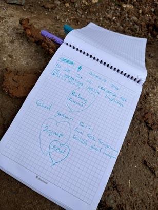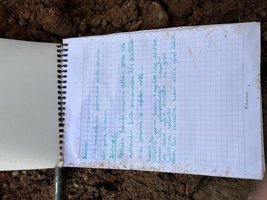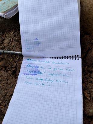 Kahramanmaraş’taki okul saldırısında hayatlarını kaybeden ve yan yana toprağa verilen öğrenciler Belinay Nur Boyraz (11), Bayram Nabi Şişik (11), Kerem Erdem Güngör (11) ve Zeynep Kılıç’ın (11) mezarları başına bırakılan not defterlerine aile yakınları, okul arkadaşları ve ziyarete gelenler duygu dolu notlar yazdı.