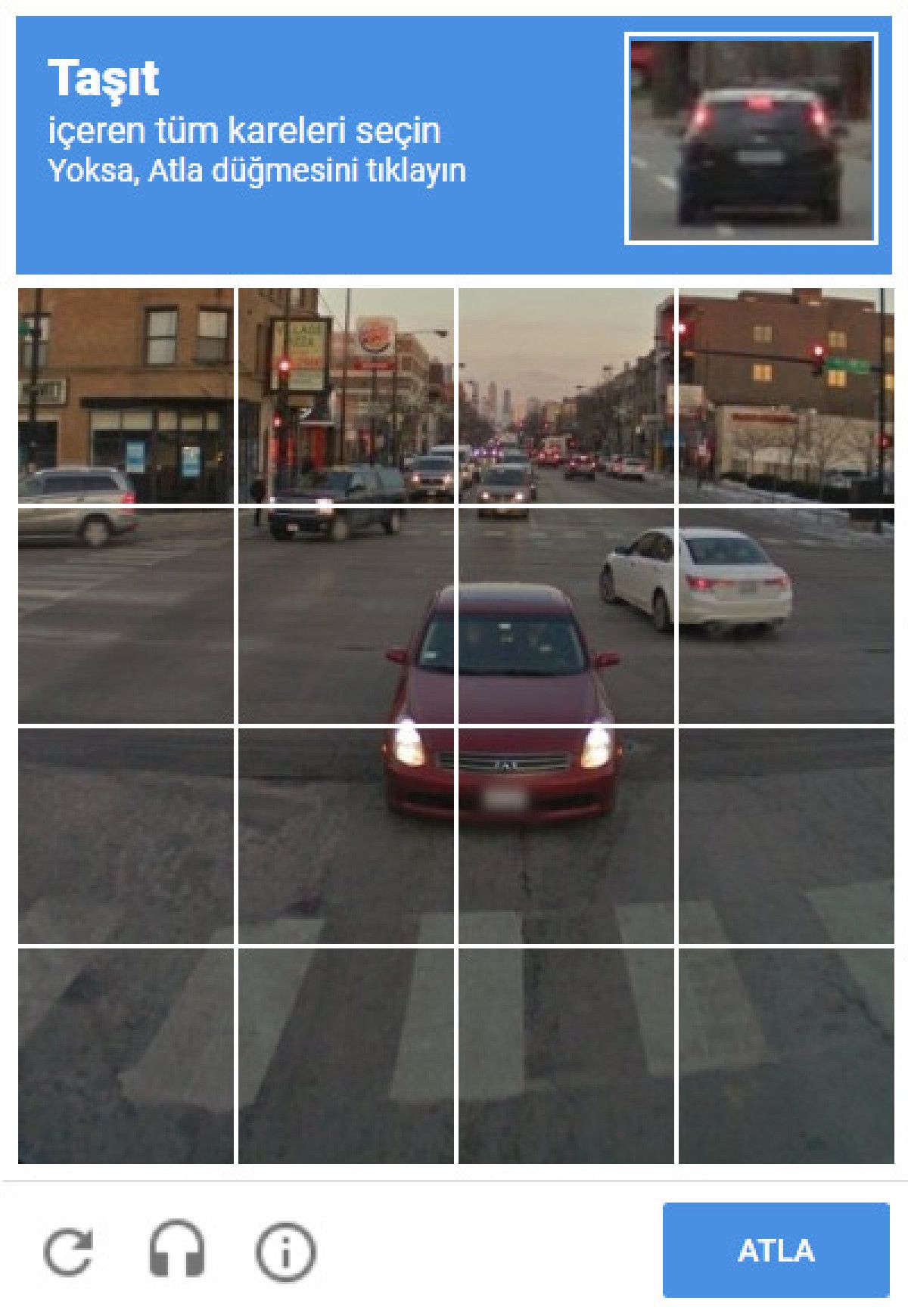 Bunu genellikle “trafik lambasını işaretle” veya “arabaları seç” gibi testlerle yaparsınız.