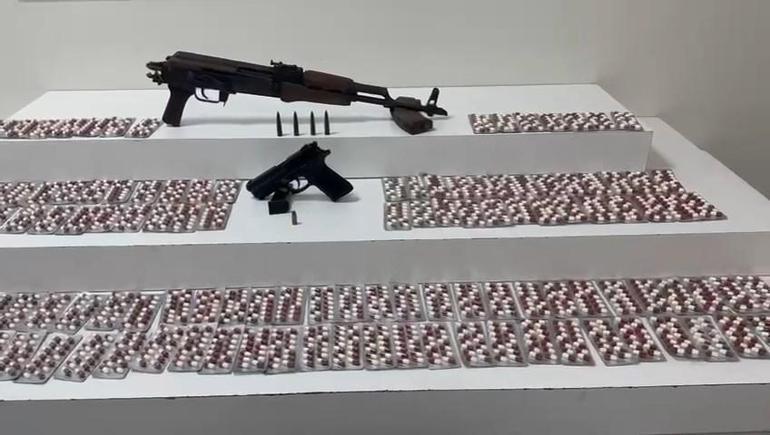 Evde yapılan aramalarda 1 uzun namlulu tüfek, ruhsatsız tabanca, 2 şarjör, 5 fişek ve bin 820 adet uyuşturucu hap ele geçirildi. 2 şüpheli sevk edildikleri mahkemece tutuklandı.