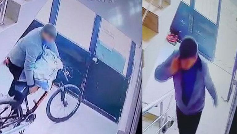 Antakya ilçesi Altınçay Mahallesi’nde bir apartmana telefonla konuşuyor gibi yaparak dikkat çekmeden giren hırsız, bodrum katta bulunan bir bisikleti ve eşyaları torbaya koyarak çaldı. Anbean güvenlik kamerasına yansıyan görüntüleri izleyen apartman sakini Rasim Savyun, kızına ait bisikletin hırsız tarafından çalındığını fark etti.