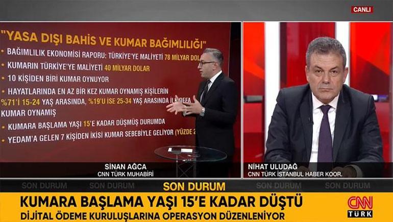 Türkiye’de kumarın ve yasa dışı bahis faaliyetlerinin ulaştığı boyut artık akılalmaz seviyeye geldi. Yasa dışı bahis çeteleri, ilk kez milyonlarca çalışanı ilgilendiren asgari ücret artışı üzerinden bahis açtı. CNN Türk Muhabiri Sinan Ağca ve CNN Türk İstanbul Haber Koordinatörü Nihat Uludağ, bu şaşkınlık yaratan gelişmenin perde arkasını, Türkiye’de büyüyen yasa dışı bahis ekonomisini ve gençler üzerindeki yıkıcı etkilerini anlattı.