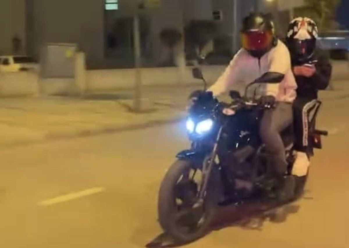 Görüntülerde, motosikletin ön tekerleğini kaldırmaya çalıştığı sırada devrilmesi ve iki kişinin yola savrulması yer aldı.