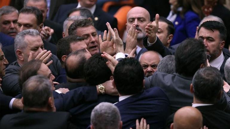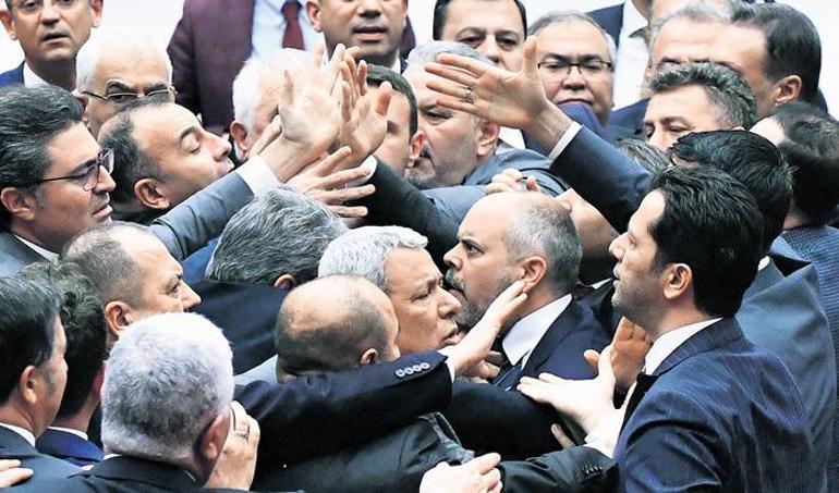 Kurtulmuş’un konuşması sırasında muhalefet vekilleri sıralara vurarak Kurtulmuş’un konuşmasına izin vermedi, bazı vekiller ön sıralara doğru yürüdü. Bu sırada oturumu yöneten Mustafa Şentop muhalefete uyarıda bulunarak, “Çalışma düzenini bozmaktan İçtüzüğe göre işlem yapacağım” dedi. Muhalefetin sloganlı tepkisi Kurtulmuş’un konuşması süresince devam edince Şentop birleşime ara vermek durumunda kaldı. Bu sırada AK Parti ve CHP grupları arasında yaşanan atışma arbedeye dönüştü. Vekiller arasında fiziki kavga ancak idare amirlerinin araya girmesi ile önlendi.