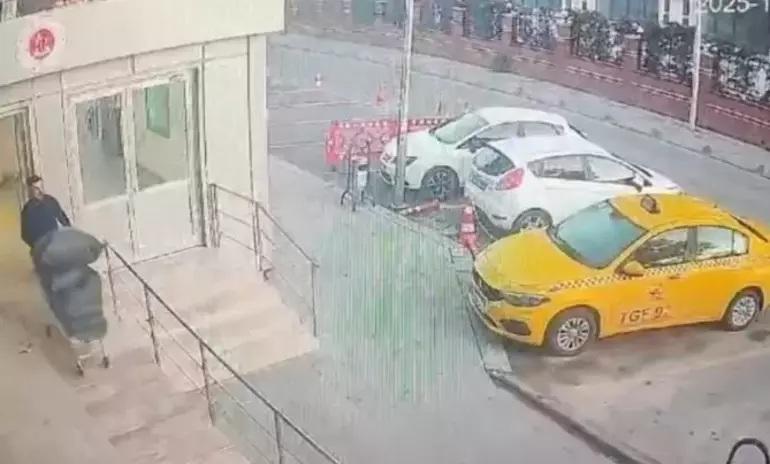 Erdal Timurtaş, 25 kilo altın ile 50 kilo gümüşü siyah çöp poşetleri içinde, evrak taşımada kullanılan market arabasıyla adliyenin zemin katında, söz konusu gün saat 07.38’de görülüyor.