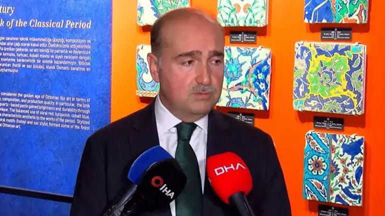 Milli Saraylar Başkanı Dr. Yasin Yıldız, “Belki eser sayısından önce arkada, özellikle giriş bölümünde Nahvi’nin yazmış olduğu ve 19. yüzyıl çinilerine işlenen çok önemli bir kaside var. Bu koleksiyonumuzun çok müstesna bir parçası. Bir bütün halinde burada sergileyebiliyoruz; çok sayıda çiniden oluşuyor. Burada yaklaşık ilk etapta 250 parça çiniyi sergiliyoruz. Çiniler yaklaşık söylemiş olduğum gibi 16. yüzyılla 19. yüzyıl arasını kapsıyor. Dolayısıyla 19. yüzyıla varması nedeniyle bunların içinde bir miktar saraya ithal çinilerin geldiği dönemi de kapsadığını düşünürsek aslında Osmanlı Sarayı’nda kullanılmış olan bir bütün çini geleneğini, burada yerli olsun yabancı olsun göstermiş oluyoruz” diye konuştu.