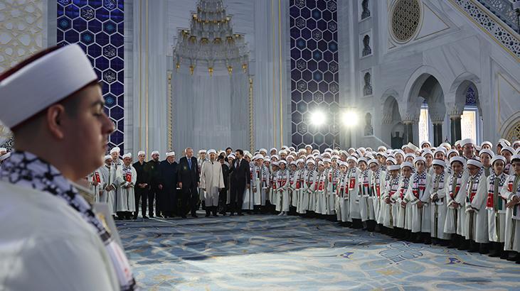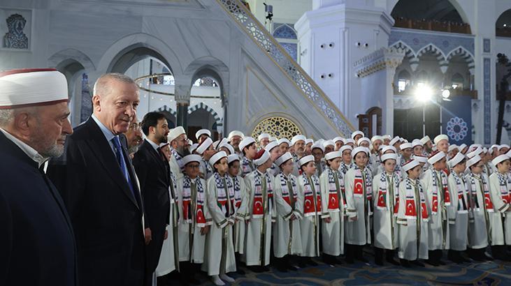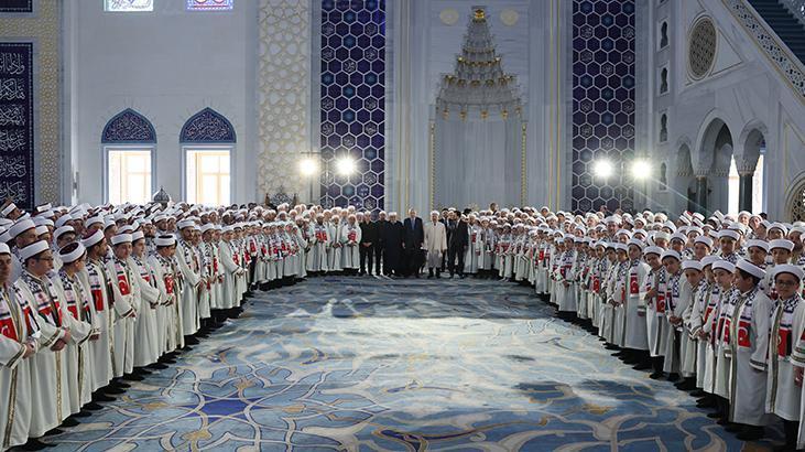 Cumhurbaşkanı Erdoğan, Çamlıca Camisi’nde, imam hatip okulları ile Kur’an kurslarında hafızlık eğitimlerini tamamlayan öğrencilerin tekbirleriyle karşılandı.