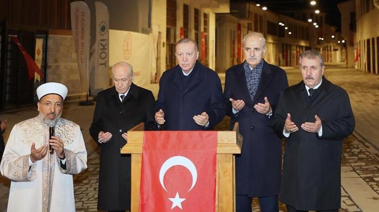Daha sonra Habib-i Neccar Camii’nin bulunduğu ve dünyanın ilk aydınlatılan caddesi olan Kurtuluş Caddesi’ne geçen Erdoğan’a, TBMM Başkanı Numan Kurtulmuş, MHP Genel Başkanı Devlet Bahçeli ve BBP Genel Başkanı Mustafa Destici de eşlik etti.