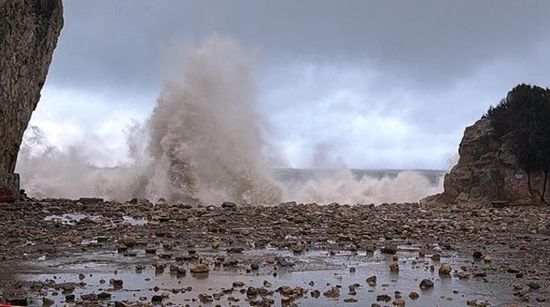 Dev dalgalar ilçeyi vurdu! Kaldırım taşları söküldü