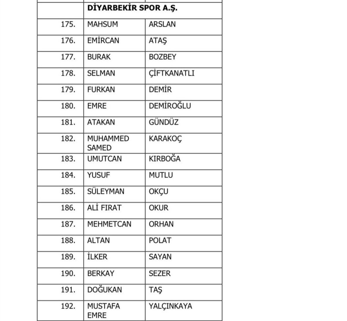 Bahis oynadıkları gerekçesiyle en fazla sevkin Diyarbekirspor’dan yapıldığı görüldü. Listede 3. Lig ekibinden 18 futbolcu yer alıyor.
