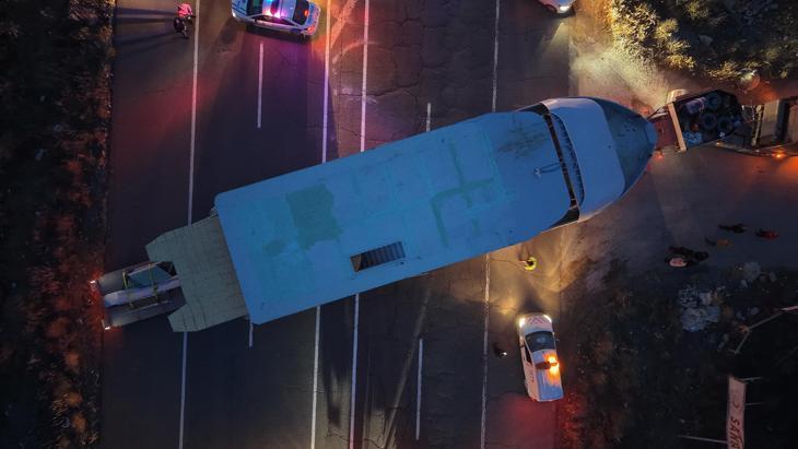 Ekipler seferber oldu! Lüks yat taşıyan TIR, kara yolu kilitleyince ortaya ilginç görüntüler çıktı