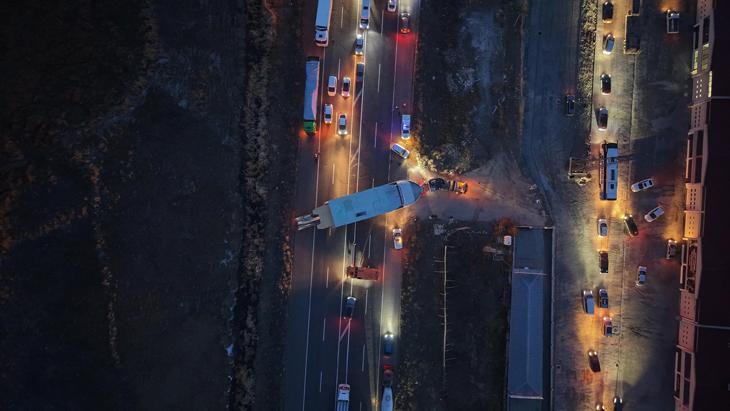 Akdağ Sanayi Sitesi önüne kadar gelen TIR, motorun ısınması üzerine kilitlendi. TIR’ın çift şeritli yolu kapatması nedeniyle ihbar üzerine bölgeye jandarma, trafik polisleri ile karayolları ekipleri sevk edildi.
