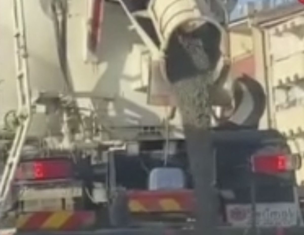 Harcı asfalta döken sürücü, daha sonra yolda hareket ederek gözden kayboldu.