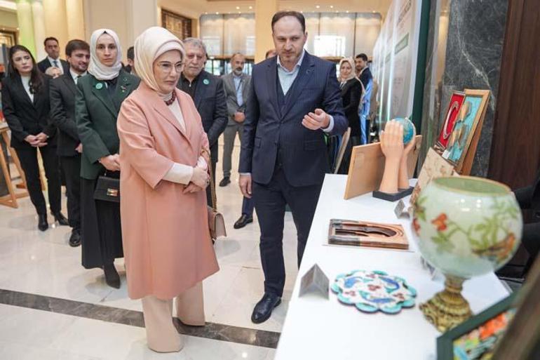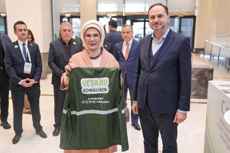 Emine Erdoğan, zirvede, Yeşilay Genel Başkanı Doç. Dr. Mehmet Dinç ve Yeşilay Mütevelli Heyeti Başkanı Prof. Dr. Mücahit Öztürk ile Yeşilay direktörlükleri tarafından kurulan stantları ziyaret ederek, Yeşilay yeleği giyip fotoğraf çektirdi.