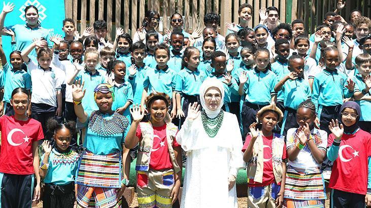 Cumhurbaşkanı Recep Tayyip Erdoğan’ın eşi Emine Erdoğan, Güney Afrika’da Uluslararası Maarif Okulu’na ziyarette bulundu.