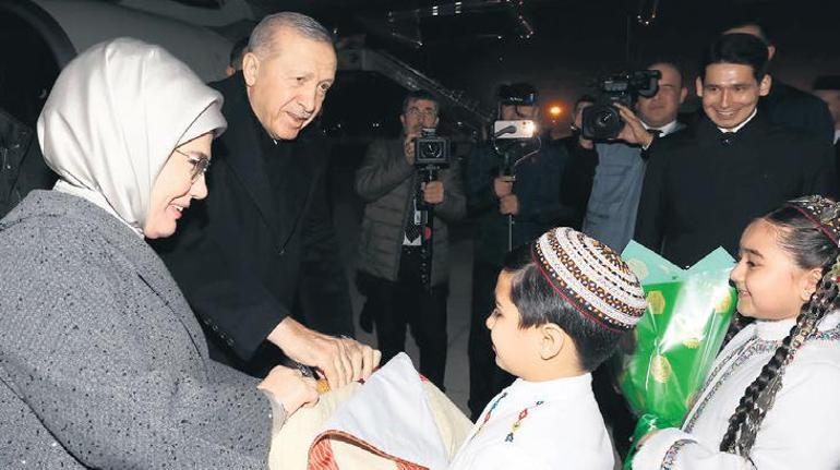 Cumhurbaşkanı Erdoğan, “Uluslararası Barış ve Güven Forumu”na katılmak üzere Türkmenistan’ın başkenti Aşkabat’a geldi. Erdoğan, Türkmenistan Halk Maslahatı Başkanı Gurbanguli Berdimuhamedov tarafından resmi törenle karşılandı. Erdoğan, forum marjında aralarında Rusya Devlet Başkanı Vladimir Putin’in olduğu bazı devlet ve hükümet başkanlarıyla görüşecek. Kremlin’den yapılan açıklamada, iki liderin Ukrayna’daki son durumu ve Türkiye-Rusya ilişkilerini görüşeceği belirtildi. ● AŞKABAT AA