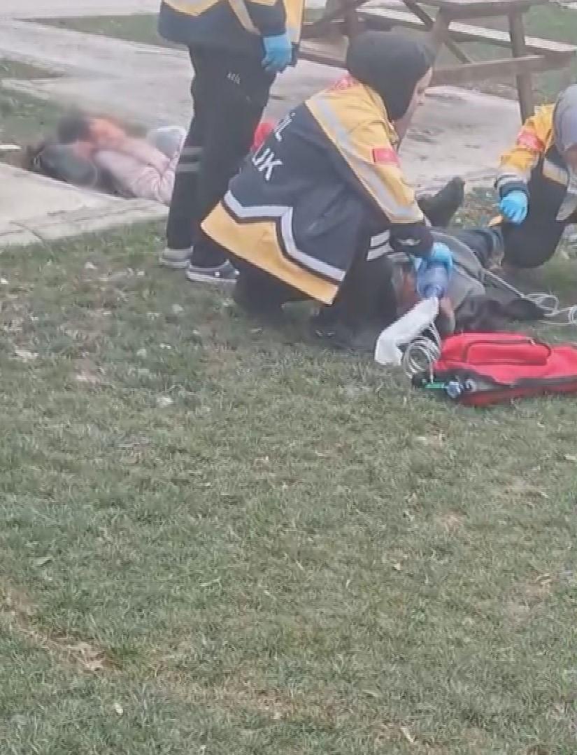 Olay yerine gelen sağlık ekiplerinin ağır yaralanan Sibel S. ve Savaş S.’ye ilk müdahale anları çevredeki kişiler tarafından cep telefonuyla kaydedildi.