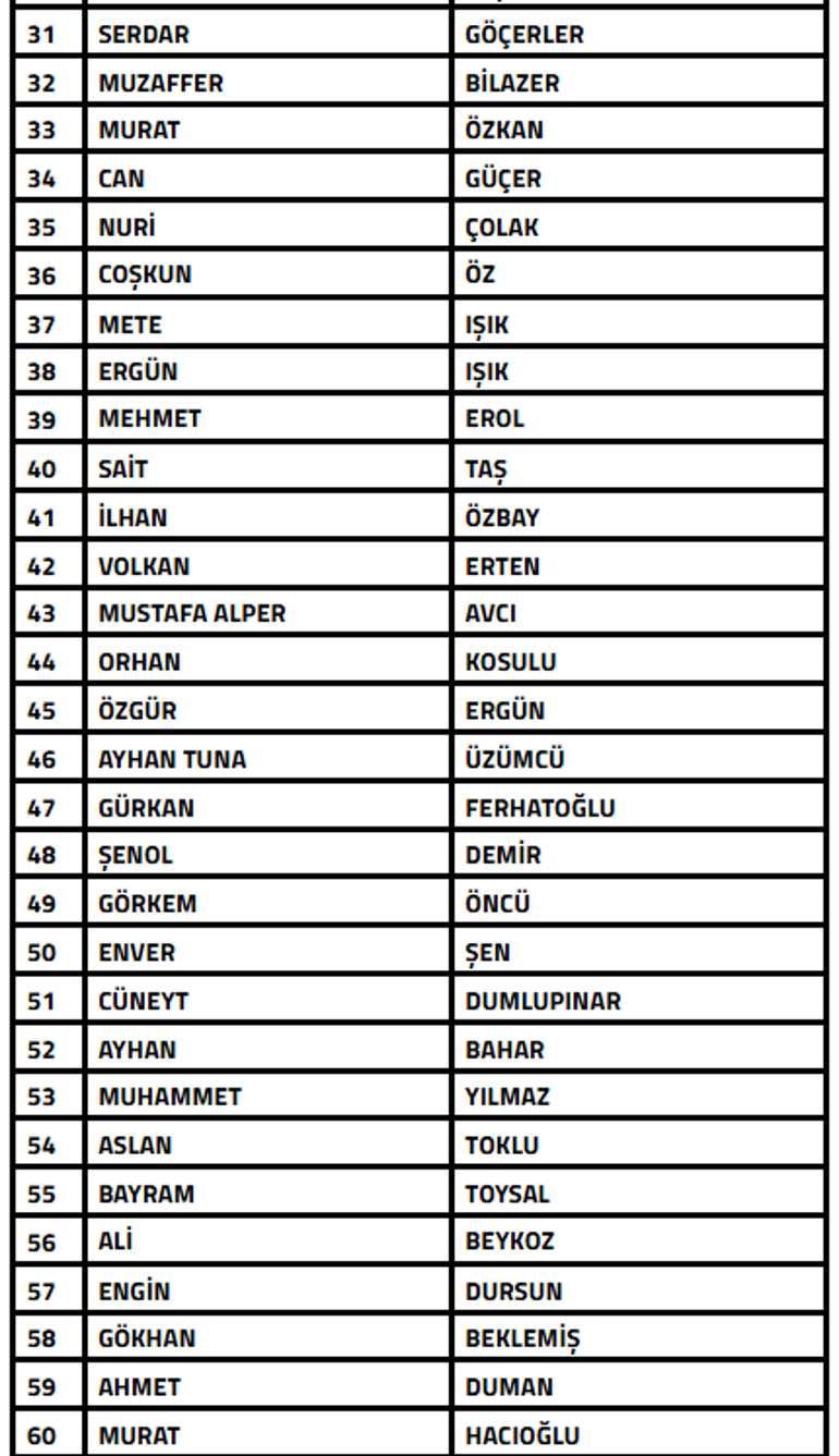 İsimlerin arasında Hakan Keleş, Mehmet Altıparmak, Sercan Yıldırım, Taner Gülleri ve Gökhan Ünal gibi Türk futbolunun yakından tanıdığı isimler bulunuyor.