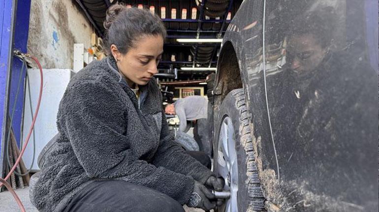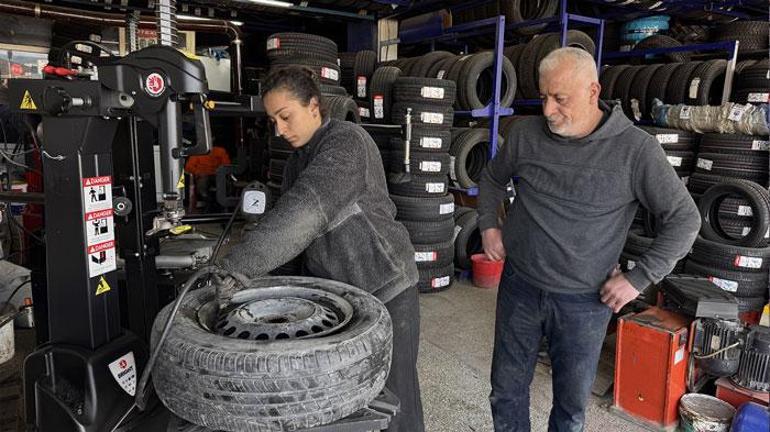 Balans ayarlarından lastik tamirine kadar tüm işleri kadın eli titizliğiyle yapan Düz, kısa zamanda öğrendiği işi 6 aydır düzenli yaparak görenlerin takdirini kazanıyor.