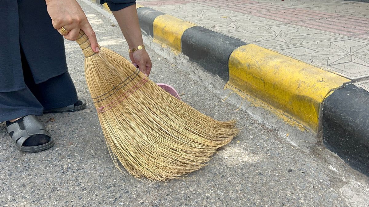 Annesinin elinden süpürgeyi devralan Saliha Özdemir, son 10 yıldır alışkanlık haline gelen ev önü temizlik geleneğini sürdürüyor.