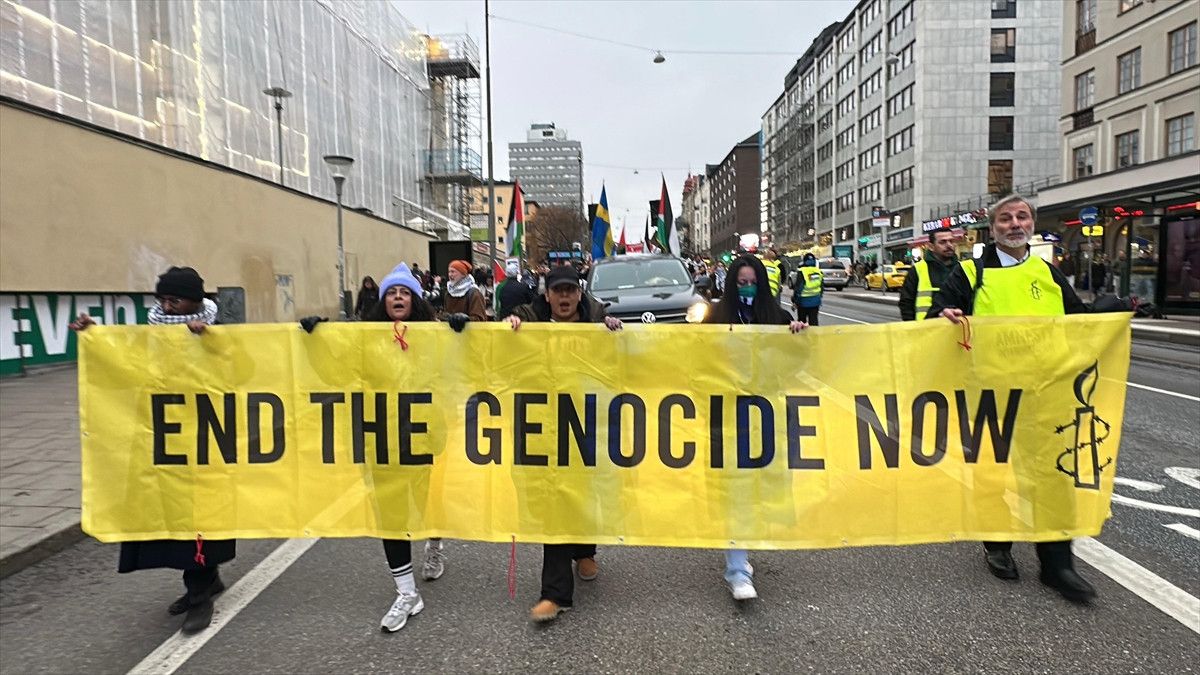 İsrail ateşkesi ihlal ederek Gazze’ye ve Lübnan’a yönelik saldırılarını sürdürüyor. İsrail’in saldırıları İsveç’in başkenti Stockholm’de protesto edildi. Gösterilerde, “Okullar ve hastaneler bombalanıyor” yazılı pankartlar taşındı.