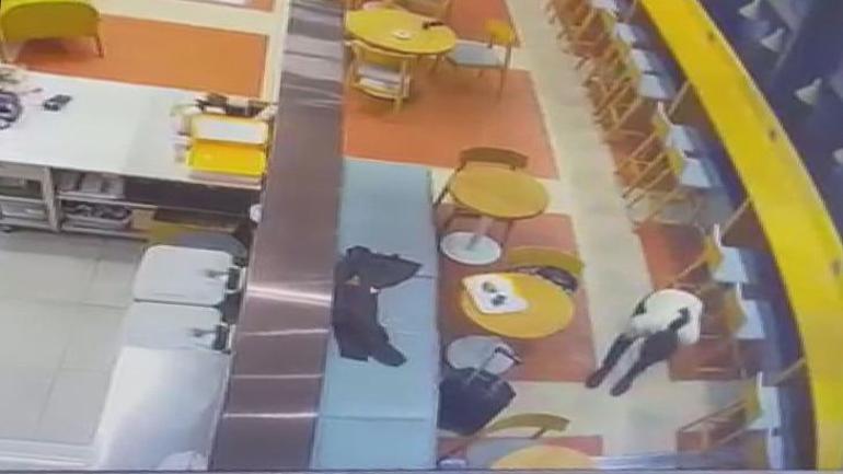 Öte yandan yolcunun boğulma tehlikesi geçirdiği ve garsonun kadına müdahale ettiği anlar güvenlik kamerasına yansıdı. (DHA)