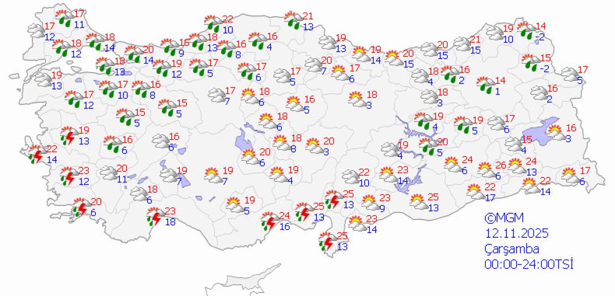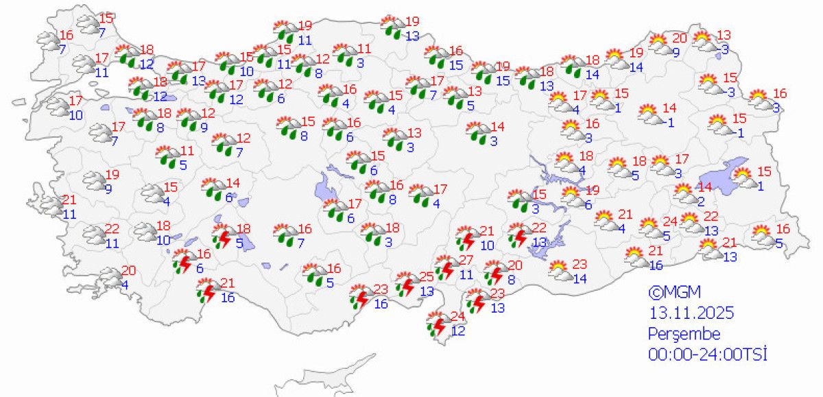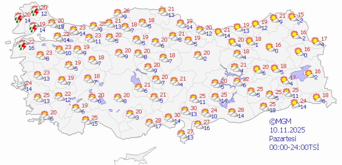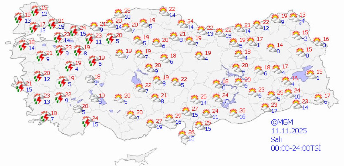 Meteoroloji Genel Müdürlüğü’nün paylaştığı haftalık hava tahmin raporuna göre salı günü İstanbul ve çevre illerinde gök gürültülü sağanak yağış bekleniyor.