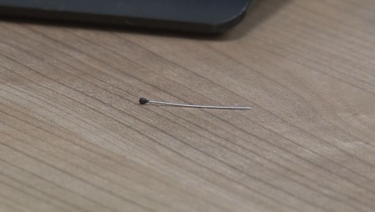 Öte yandan, yaklaşık 3 santimlik toplu iğne filme yansıyan görüntüsüyle gözler önüne serildi.