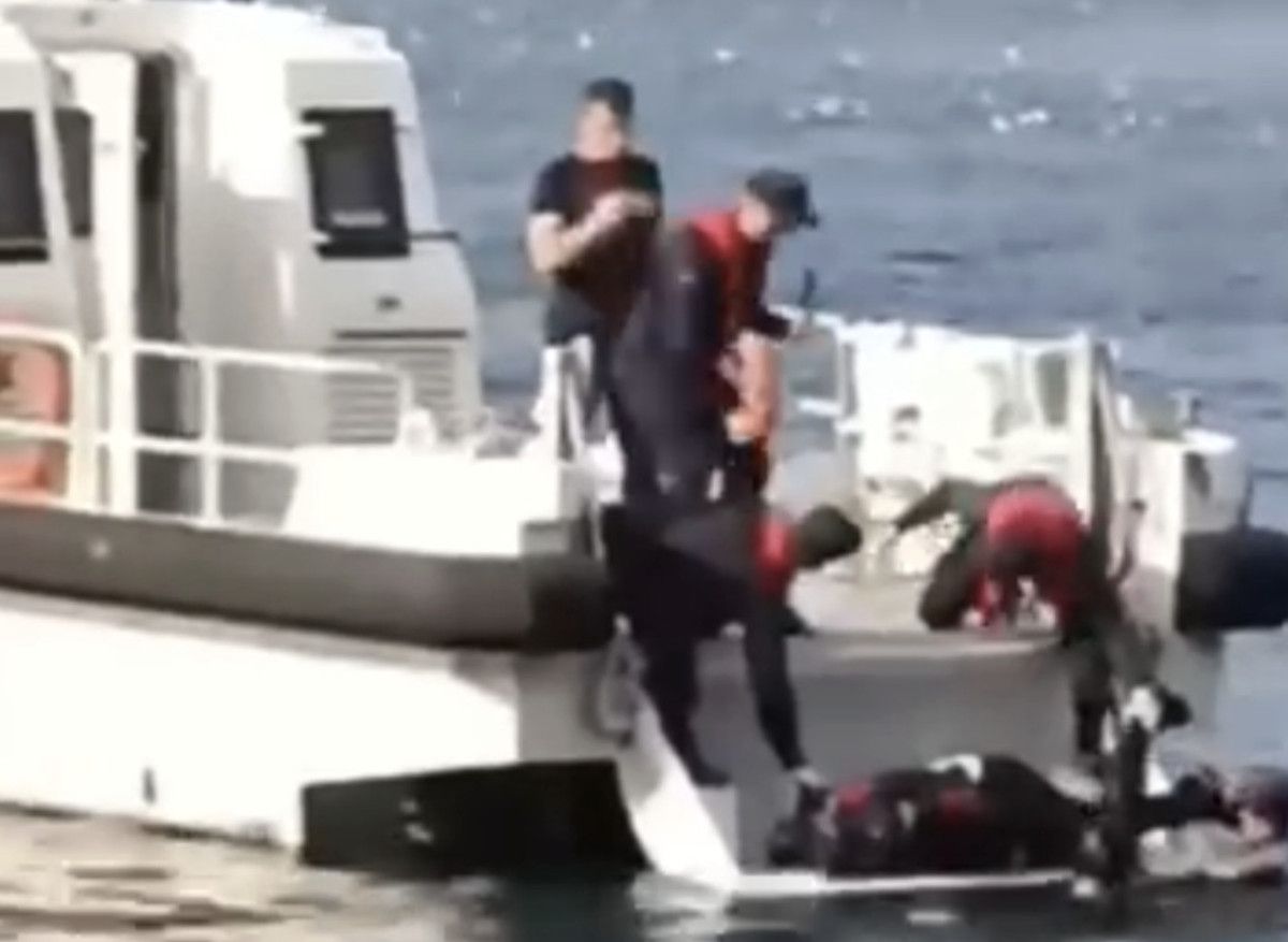 Ekipler tarafından sudan çıkarılan ceset Sahil Güvenlik teknesine alındı.