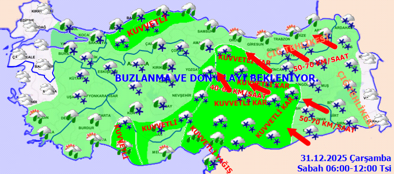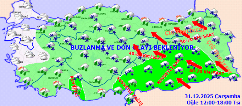 BUZLANMA VE DON OLAYI UYARISI: Ülkemizin kuzey, iç ve doğu kesimlerinde buzlanma ve don olayı beklendiğinden yaşanabilecek olumsuzluklara karşı dikkatli ve tedbirli olunması gerekmektedir.
