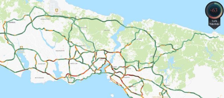 İBB CepTrafik haritası verilerine göre, kent genelinde trafik yoğunluğu yüzde 67 ölçüldü.