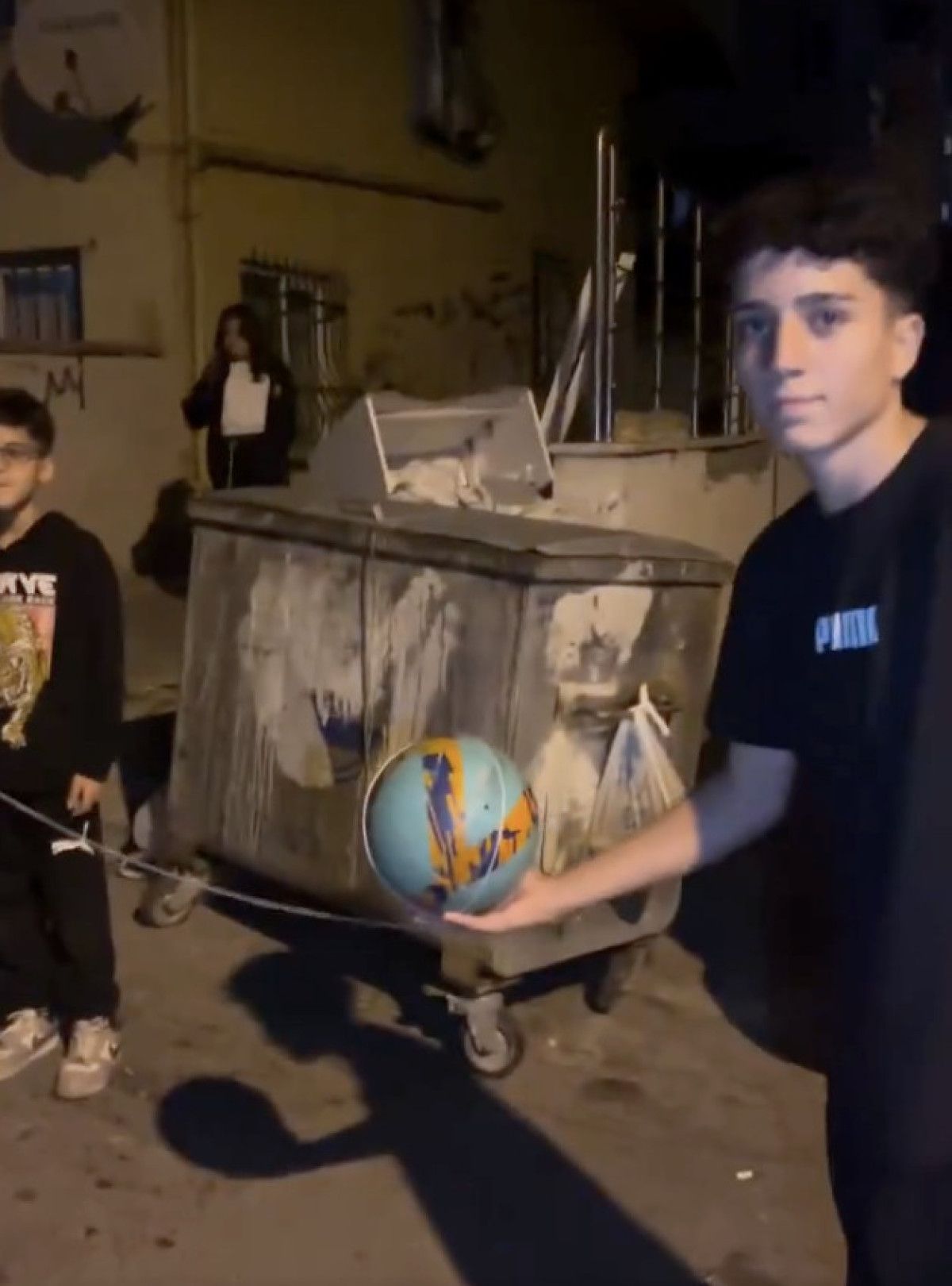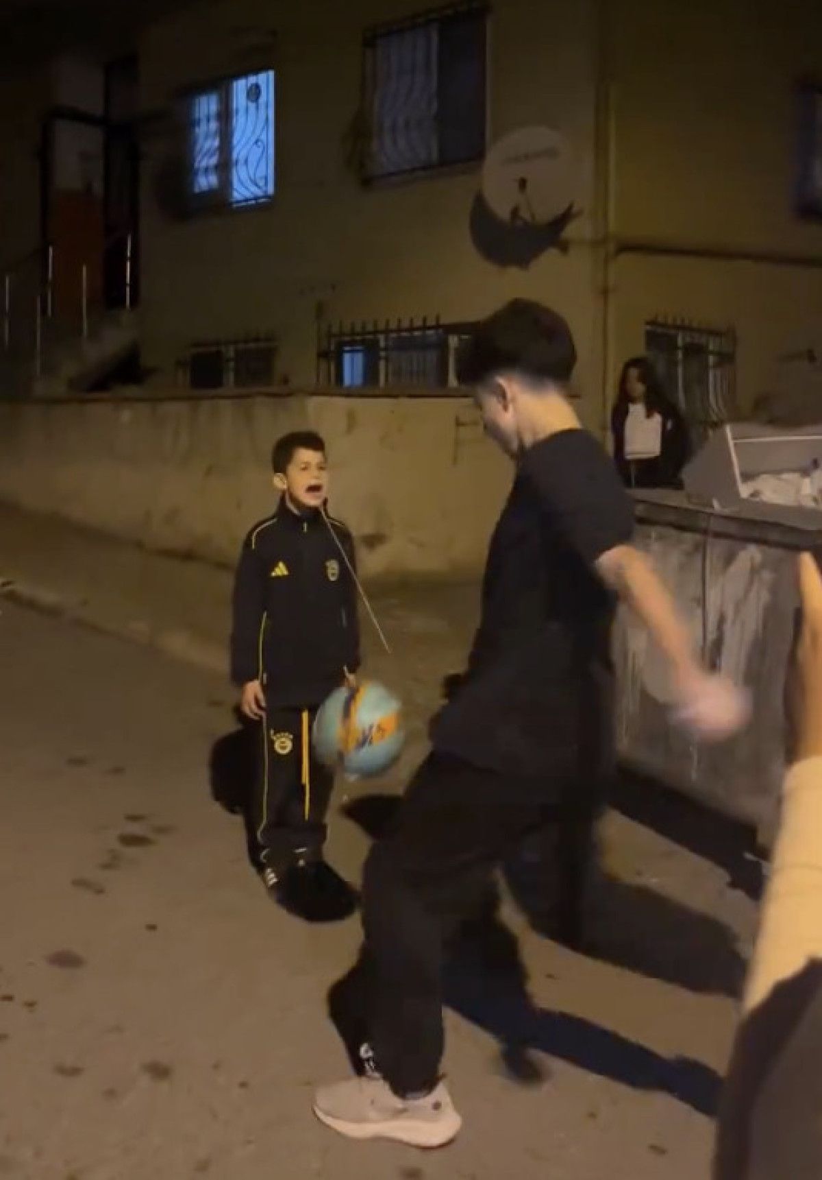 İpin bir diğer ucunu topa bağlayan çocuklar, ardından topa şut çekip dişi düşürdüler.