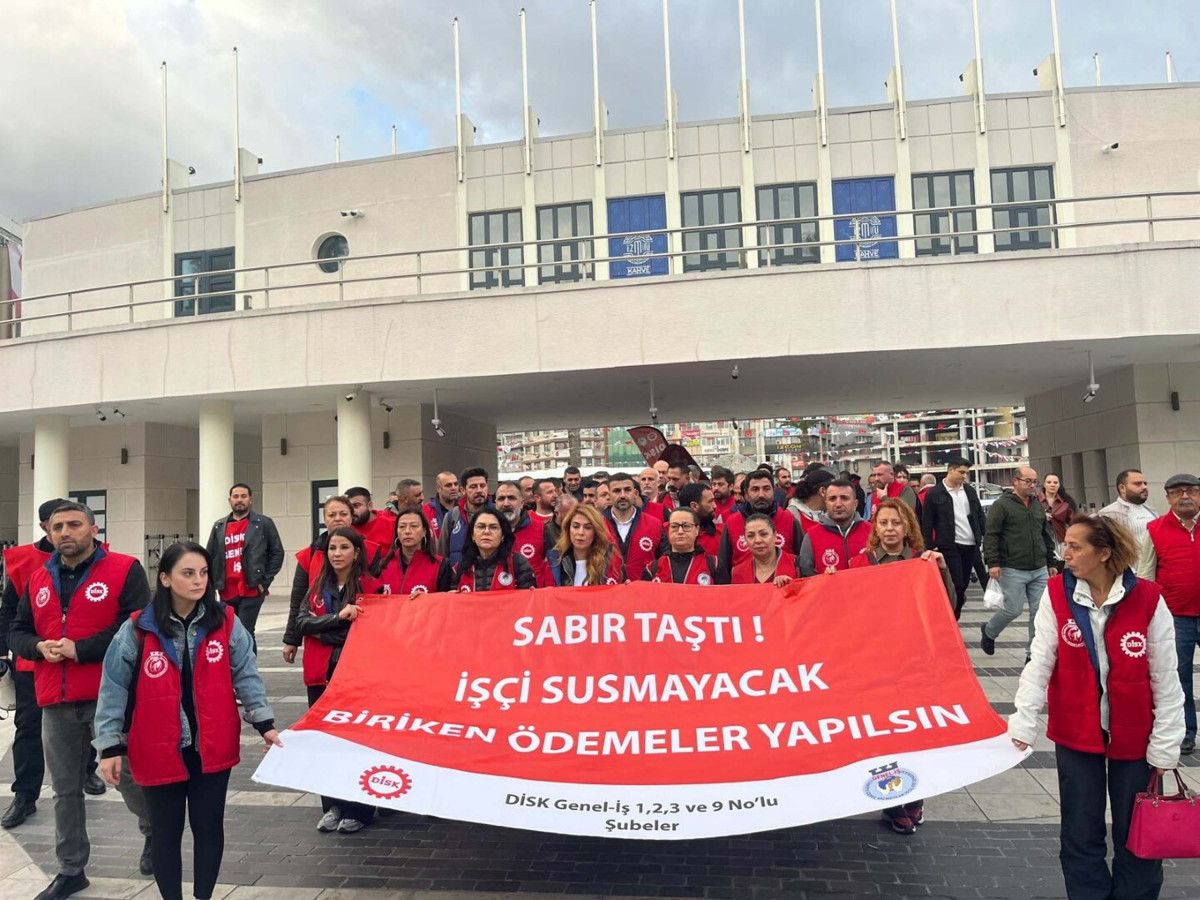 İzmir Büyükşehir Belediyesi bünyesinde bulunan şirketlerde örgütlü DİSK Genel-İş İzmir 1-2-3-9 No’lu şube üyeleri, işçilerin 3 aydır sosyal hakları ödenmemesi nedeniyle eylem kararı aldı. DİSK/Genel-İş İzmir 2 No’lu Başkanı, “Derhal bir ödeme takvimi belirlensin” ifadelerini kullandı.