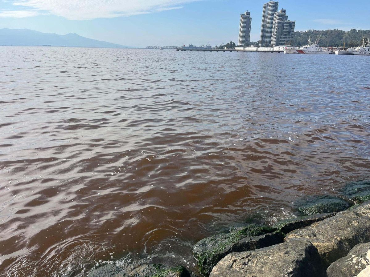 İzmir Körfezi’nde kötü koku sürüyor: Denizin rengi kahverengiye döndü