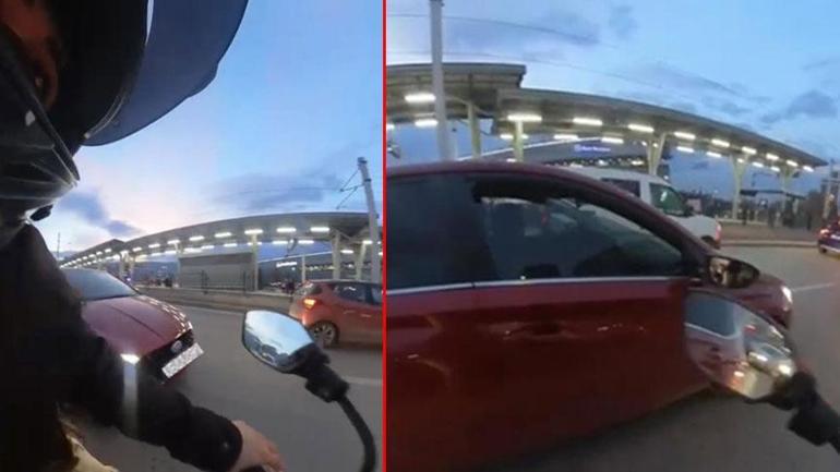 Otomobil sürücüsü tartışma esnasında motosikletliye aracını sürerek çarptı. Çarpmanın etkisiyle motosikletli kısa süreli denge kaybı yaşarken, büyük bir öfkeye kapıldı. Yaşanan gerilim üzerine kadın motosiklet sürücüsü otomobilin yanına giderek aracın sağ aynasına sert bir şekilde vurdu. Bu hareket sonrası tartışma daha da büyüdü ve iki taraf sokak ortasında birbirine hakaret etmeye başladı. Çevredeki vatandaşların araya girmeye çalıştığı olay, trafikte aksamalara neden oldu.