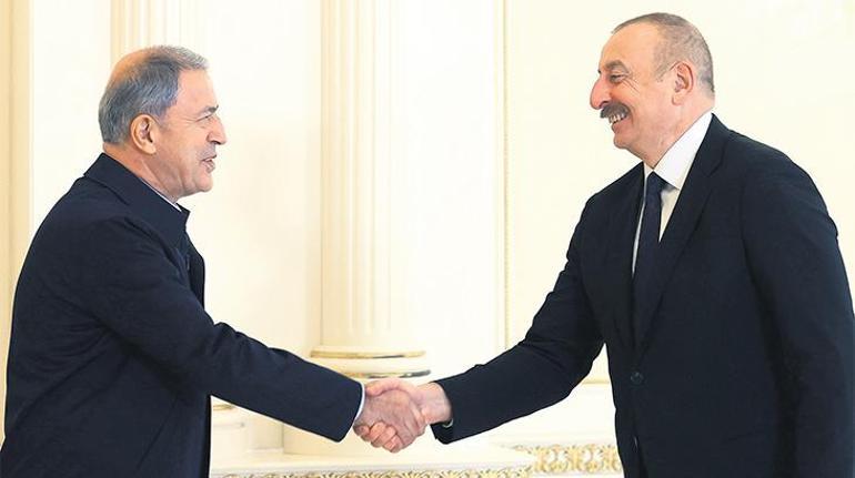 Milli Savunma Bakanı Hulusi Akar, Genelkurmay Başkanı Orgeneral Yaşar Güler ve kuvvet komutanlarıyla Azerbaycan’ın başkenti Bakü’ye gitti. Akar ve TSK komuta kademesi Cumhurbaşkanı İlham Aliyev tarafından kabul edildi. Akar, “Azerbaycanlı can kardeşlerimizin, haklı davalarında hep yanlarında olduk, bundan sonra da olmaya devam edeceğiz” dedi.