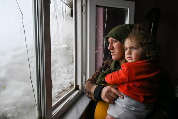 Gece sıcaklığın zaman zaman sıfırın altında 25-30 dereceye kadar düşmesiyle yaşamın daha da zorlaştığı mahallede 3 çocuklarıyla kalan çift, omuz omuza vererek ağır kış koşullarına göğüs geriyor.