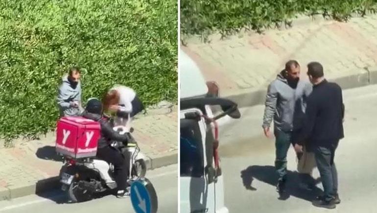 Bu sırada yoldan geçen bir motokurye duruma müdahale etmeye çalıştı; ancak bir süre sonra caddeden ayrıldı.