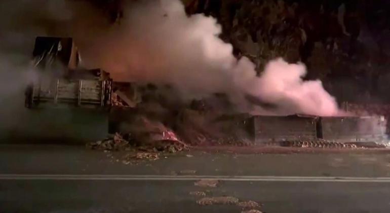 Antalya’nın Manavgat ilçesinde seyir halindeki sunta yüklü bir TIR’ın dorsesinde çıkan yangın, D-695 Karayolu’nu adeta savaş alanına çevirdi. Alevleri fark eden sürücü dorseden ayrılırken, yangın kısa sürede büyüyerek yükü tamamen küle çevirdi. Yaklaşık 3 saat süren müdahale sırasında yol çift yönlü olarak trafiğe kapatıldı. Yangının, ısınan balatalardan sıçrayan kıvılcımlardan çıkmış olabileceği değerlendiriliyor.