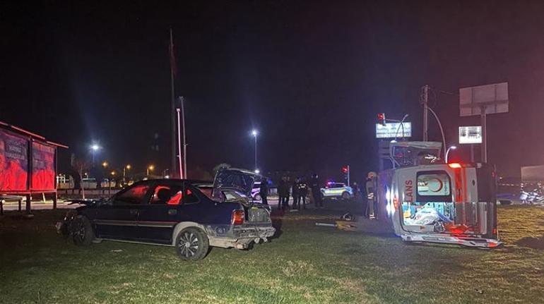 Kaza nedeniyle kavşakta trafik akışı bir süre kontrollü olarak sağlanırken, yan yatan ambulans ve hasar gören otomobil çekici yardımıyla yoldan kaldırıldı. Kazayla ilgili soruşturma başlatıldı.