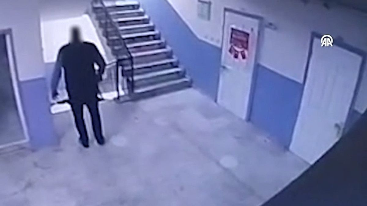 Öte yandan, olay anı okulun güvenlik kamerasına da yansıdı.