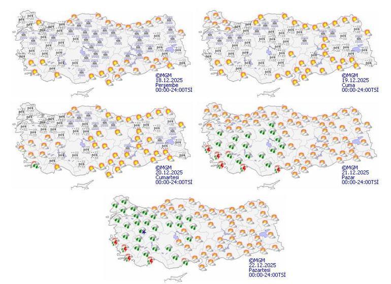 Parçalı, yer yer çok bulutlu geçeceği tahmin ediliyor. Gece ve sabah saatlerinde iç kesimlerinde hafif buzlanma ve don ile birlikte pus, yer yer sis bekleniyor.