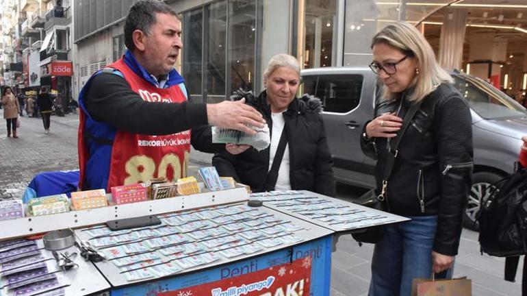 Herkesin bir hayal kurarak bilet satın aldığını anlatan 22 yıllık seyyar bayi Faruk Balcı da “İkramiye dağıtım garantili olduğu için satışlarımız iyi, talep var. İnşallah bu sene Karşıyaka’ya vermek isteriz. 800 milyon lira dağıtım garantili ikramiye var. İlgi de var. 800 milyon lira ikramiye dağıtım garantili olduğu için bilet alan daha çok alıyor, güveniyor. Son iki rakamını belirleyip bilet satın almak isteyen oluyor. 800 milyon da heyecanlandırdı. Herkesin bir hayali var. Kimisi ev almak, kimisi tatile çıkmak, kimisi çocuklarına harcamak istiyor. Saat 10.30 da açıyorum tezgâhı, akşam saat 20.30’a kadar buradayım” dedi.