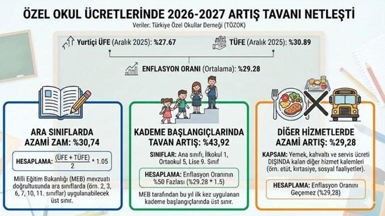 Milliyet.com.tr/ÖZEL Özel okullarda 2026-2027 yılı eğitim ve öğretim yılı için erken kayıt hareketliliği başladı. Enflasyon oranlarının açıklanmasıyla birlikte pek çok hizmet sektöründe olduğu gibi özel okullarda da tavan artış oranları belli oldu.